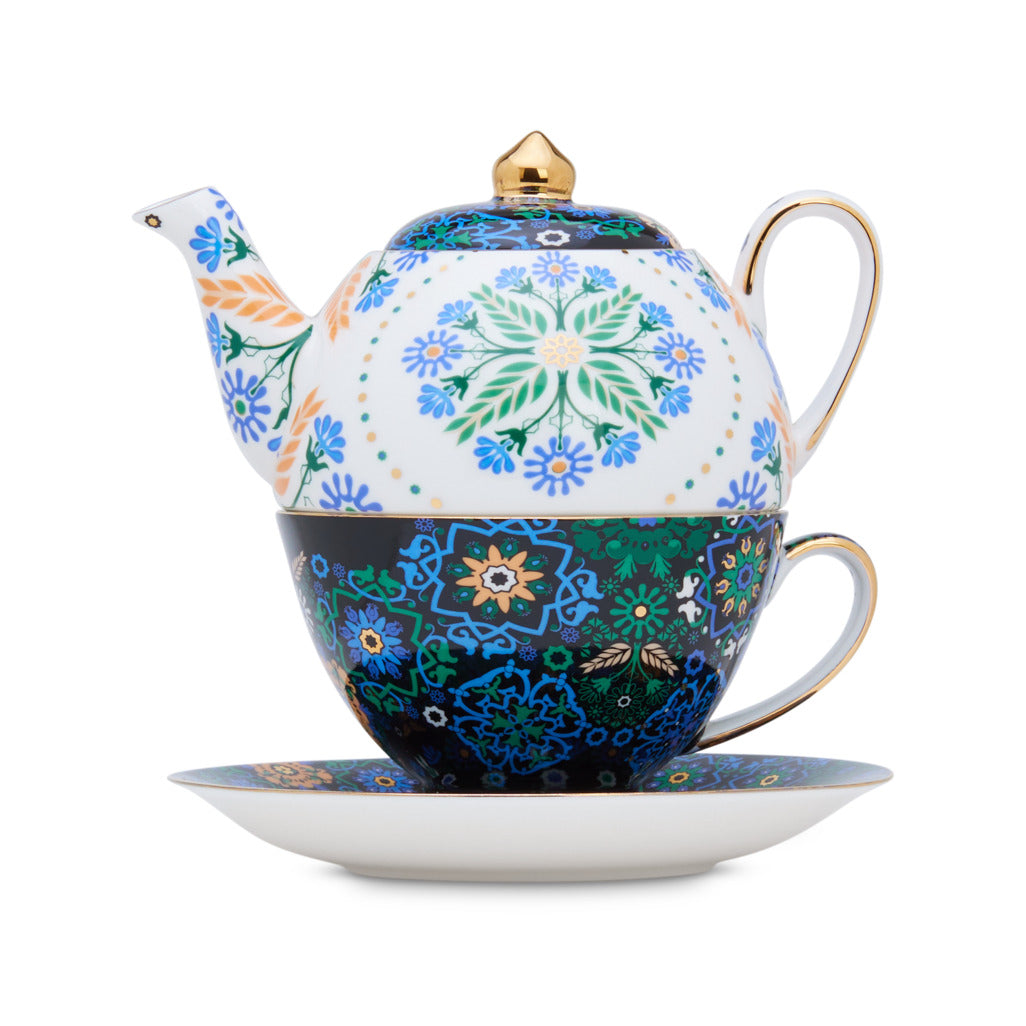 Elevate tea time with this elegant Portuguese tile-inspired set, featuring gold accents.